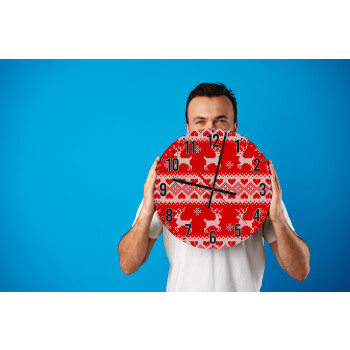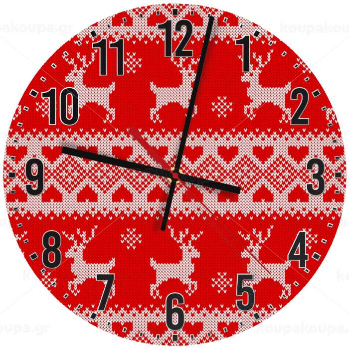 Χριστουγεννιάτικο πλεκτό ελάφια, Ρολόι τοίχου ξύλινο (30cm)