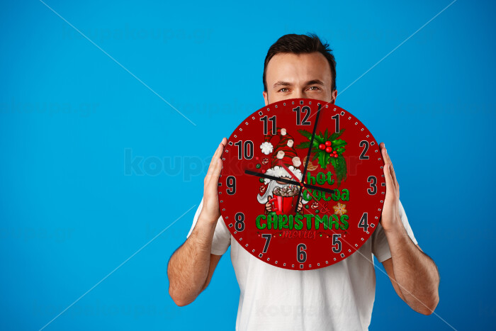 Hot cocoa and Christmas movies, Ρολόι τοίχου ξύλινο (30cm)