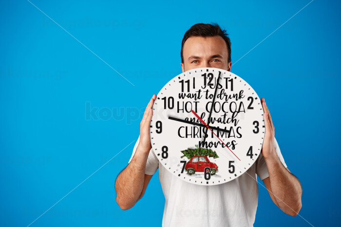 I just want to drink hot cocoa and watch christmas movies mini cooper, Ρολόι τοίχου ξύλινο (30cm)