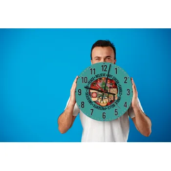 Joy, Peace, Believe, Hot Cocoa, Carols, Ρολόι τοίχου ξύλινο (30cm)