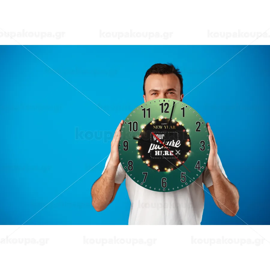PHOTO xmas lights, Ρολόι τοίχου ξύλινο (30cm)
