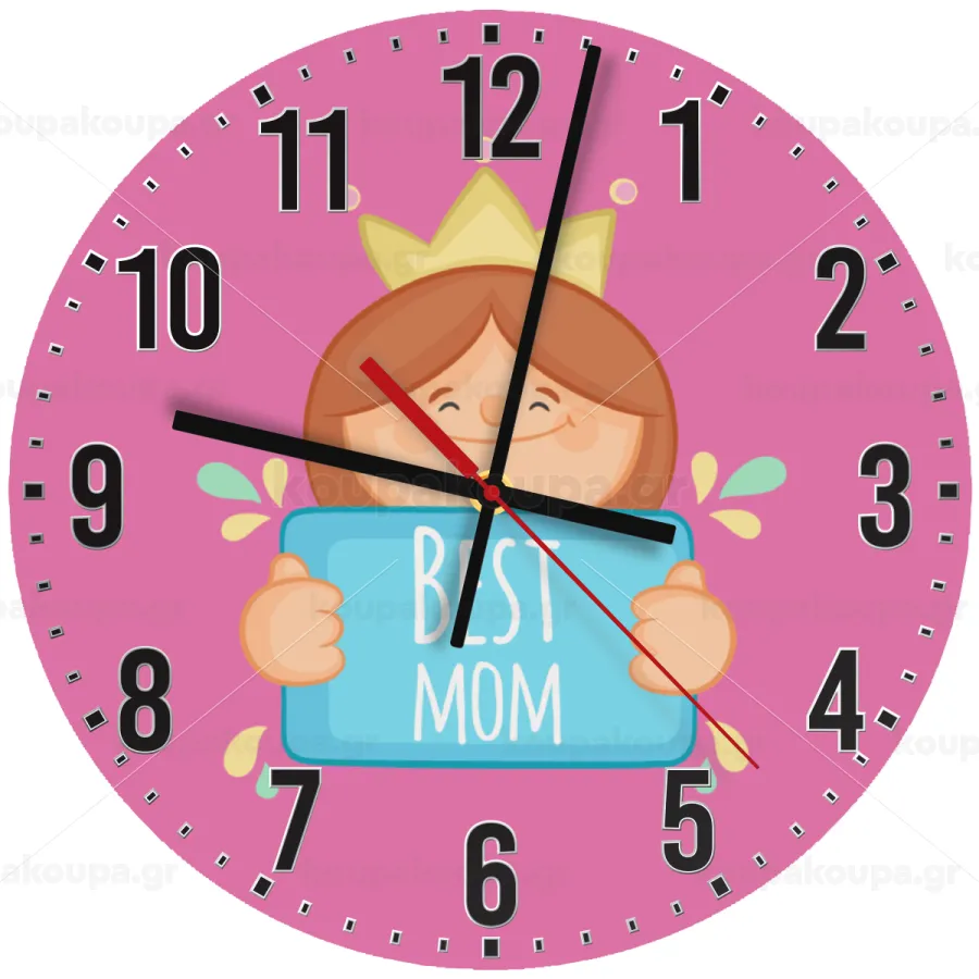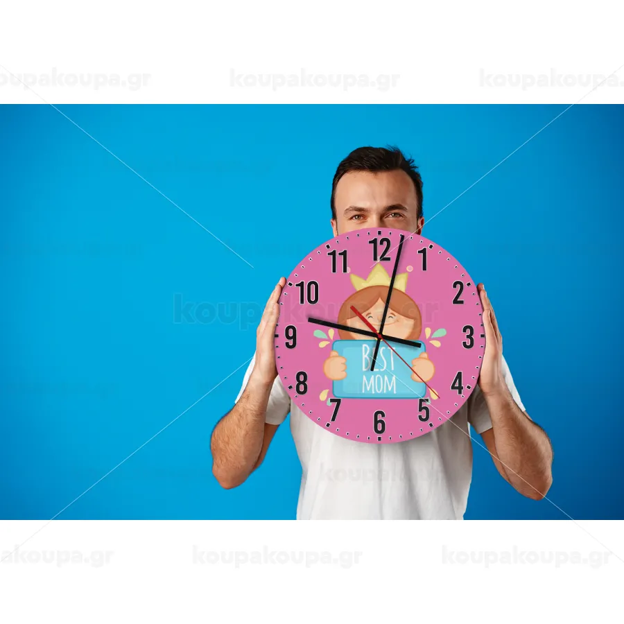 Best mom Princess, Ρολόι τοίχου ξύλινο (30cm)