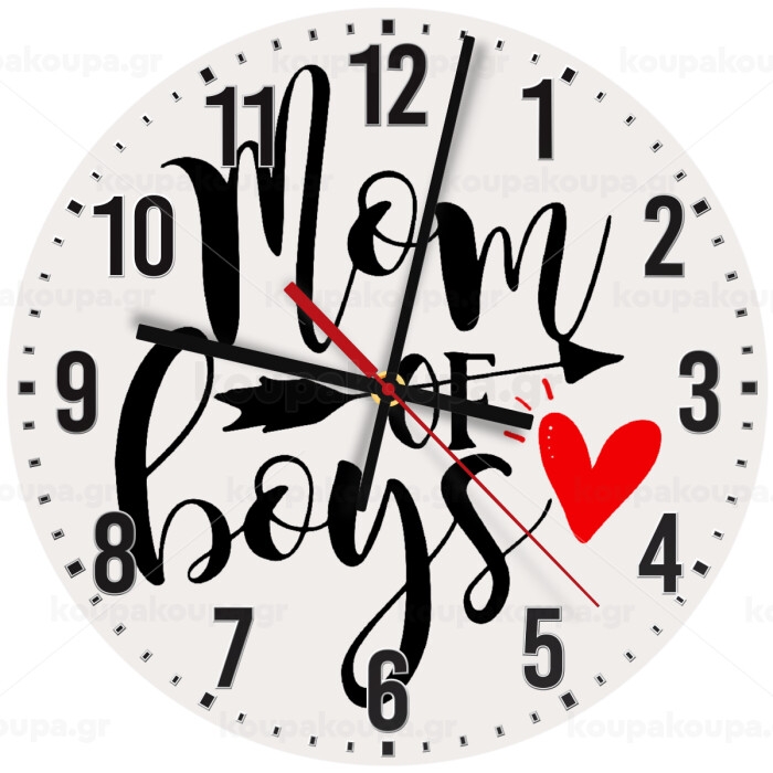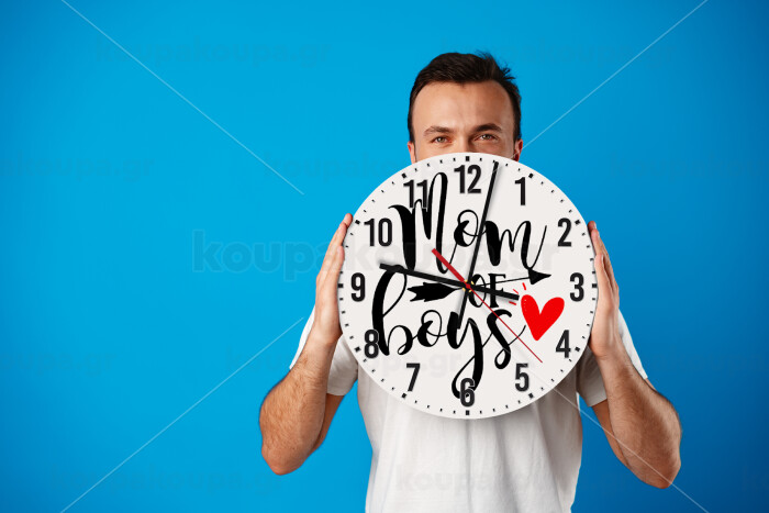 Mom of boys, Ρολόι τοίχου ξύλινο (30cm)