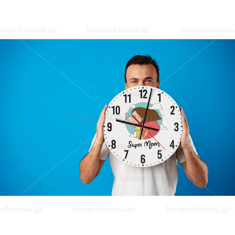 Super mom, Ρολόι τοίχου ξύλινο (30cm)