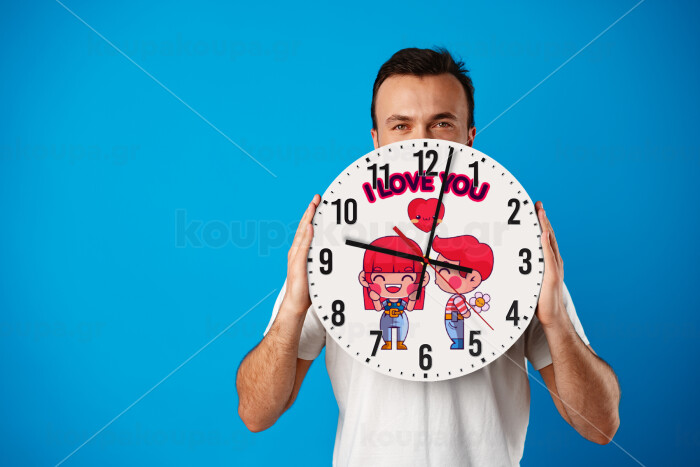 Couple, I love you, Ρολόι τοίχου ξύλινο (30cm)