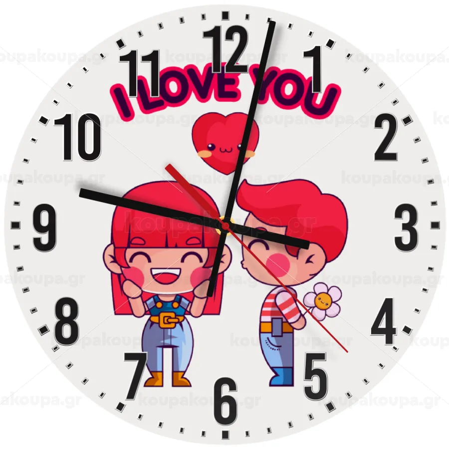 Couple, I love you, Ρολόι τοίχου ξύλινο (30cm)