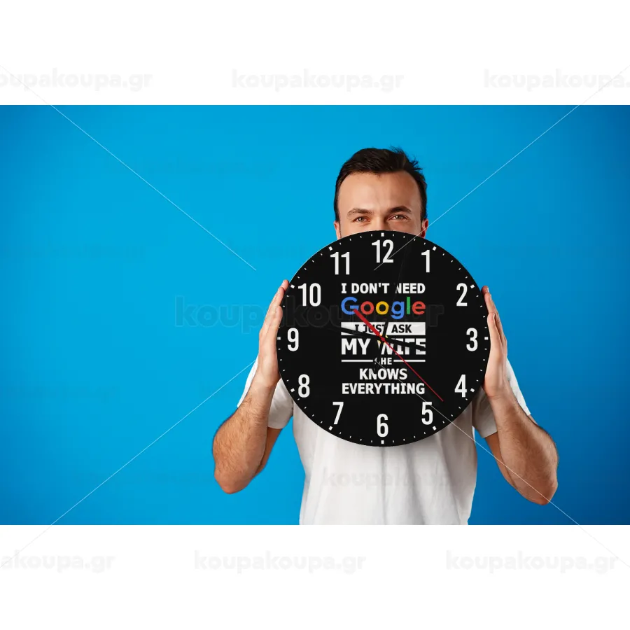 I don't need Google, just ask my WIFE, Ρολόι τοίχου ξύλινο (30cm)