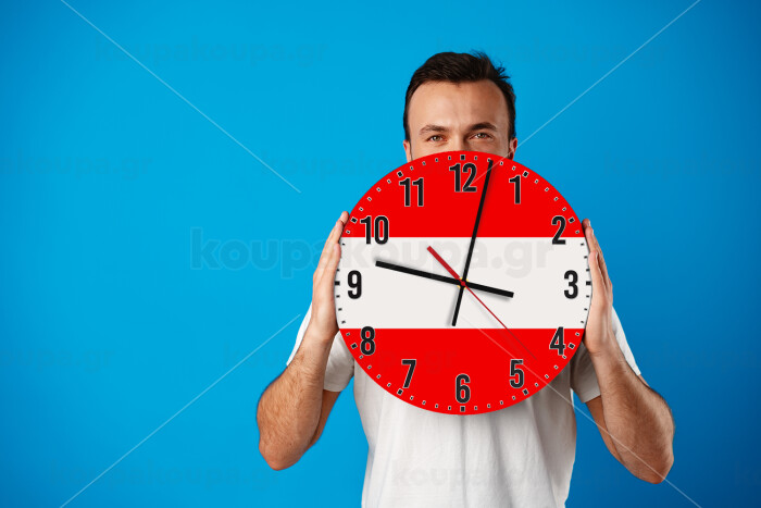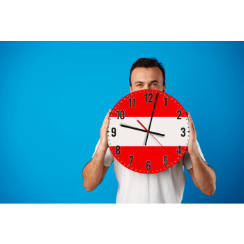 Austria flag, Ρολόι τοίχου ξύλινο (30cm)