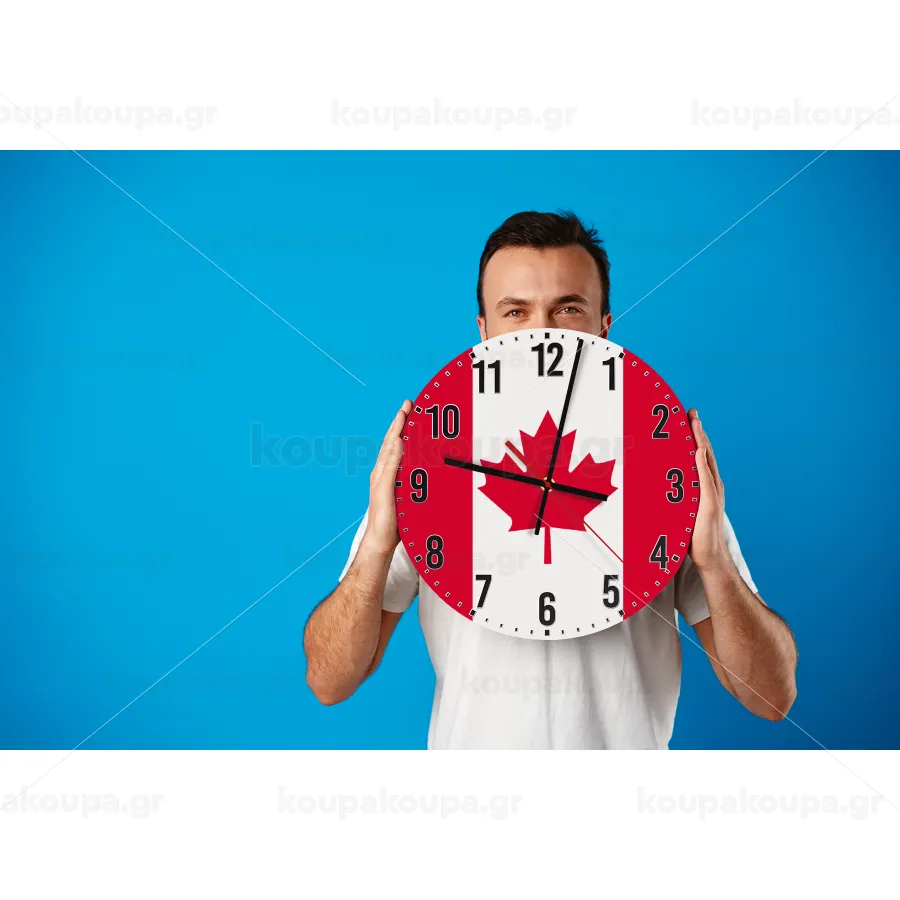 Canada flag, Ρολόι τοίχου ξύλινο (30cm)