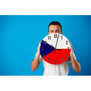Czechia flag, Ρολόι τοίχου ξύλινο (30cm)