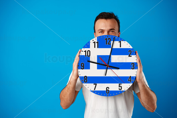 Greece flag, Ρολόι τοίχου ξύλινο (30cm)