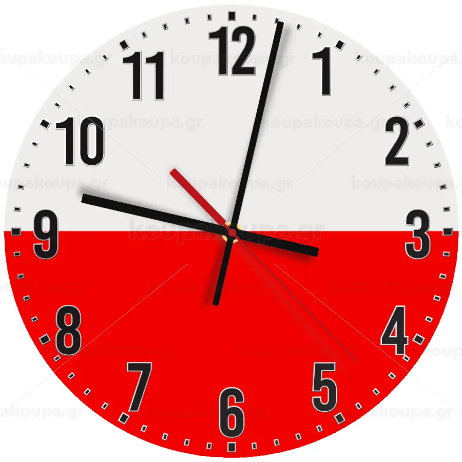 Poland flag, Ρολόι τοίχου ξύλινο (30cm)