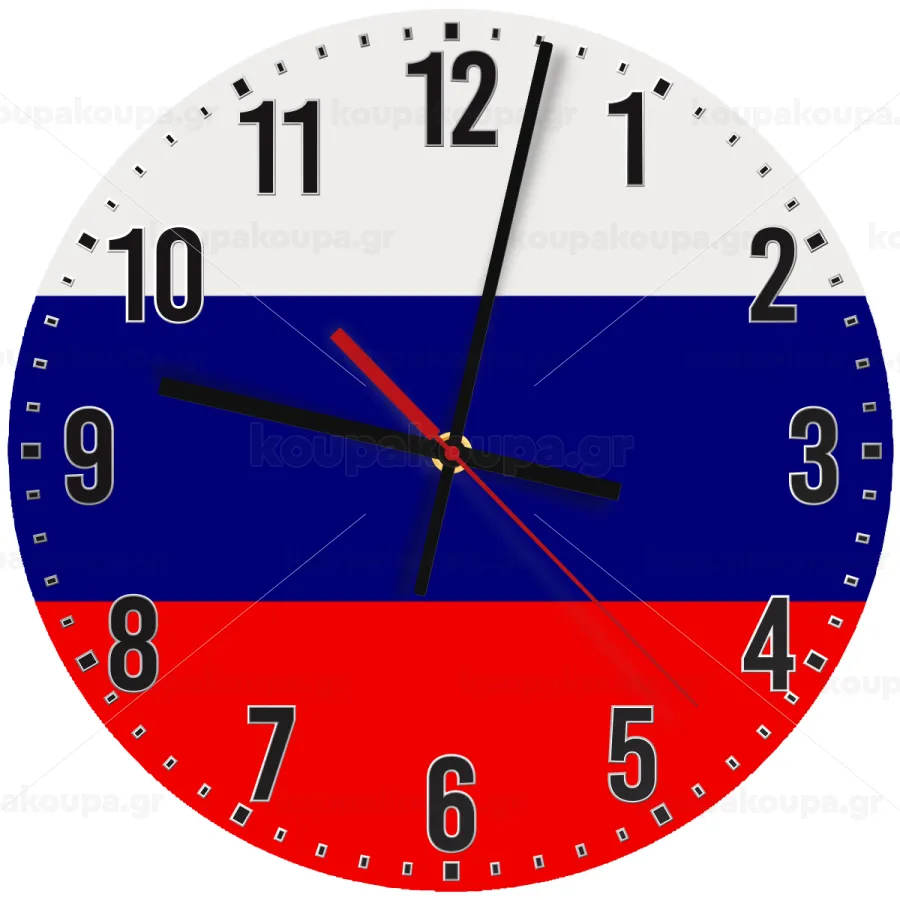 Russia flag, Ρολόι τοίχου ξύλινο (30cm)