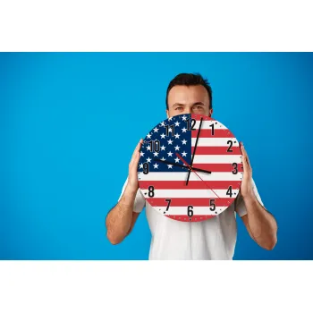 USA flag, Ρολόι τοίχου ξύλινο (30cm)