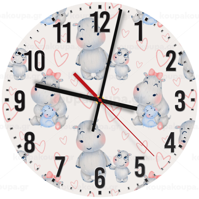 Ιπποπόταμος, Ρολόι τοίχου ξύλινο (30cm)