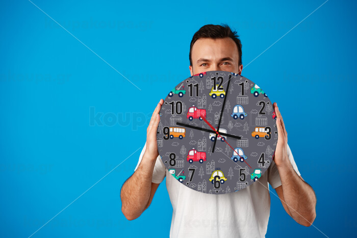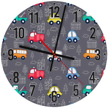 Hand drawn childish set with cars, Ρολόι τοίχου ξύλινο (30cm)