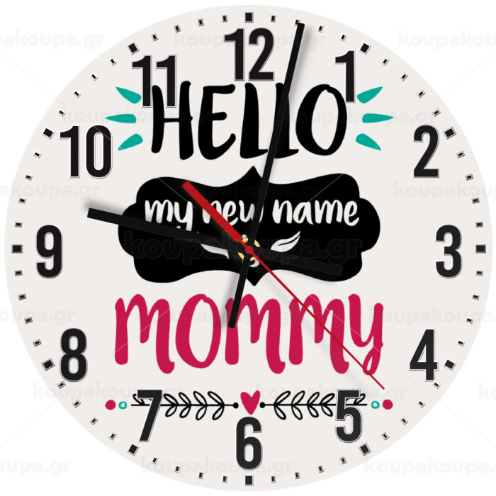 Hello, my new name is Mommy, Ρολόι τοίχου ξύλινο (30cm)