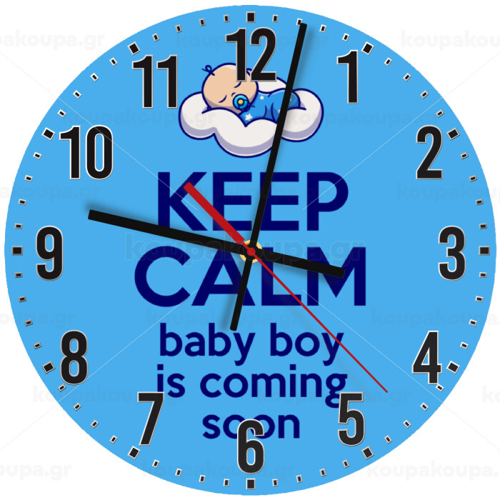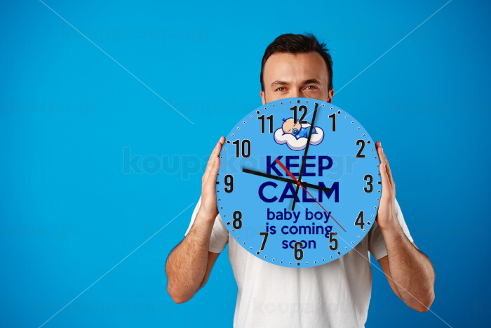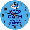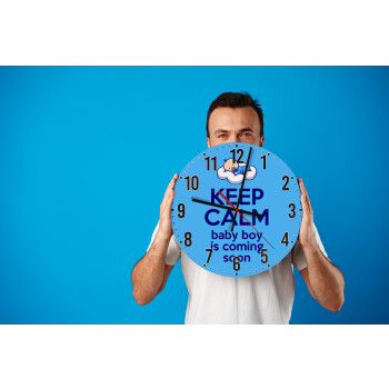 KEEP CALM baby boy is coming soon!!!, Ρολόι τοίχου ξύλινο (30cm)