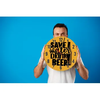 Save Water, Drink BEER, Ρολόι τοίχου ξύλινο (30cm)