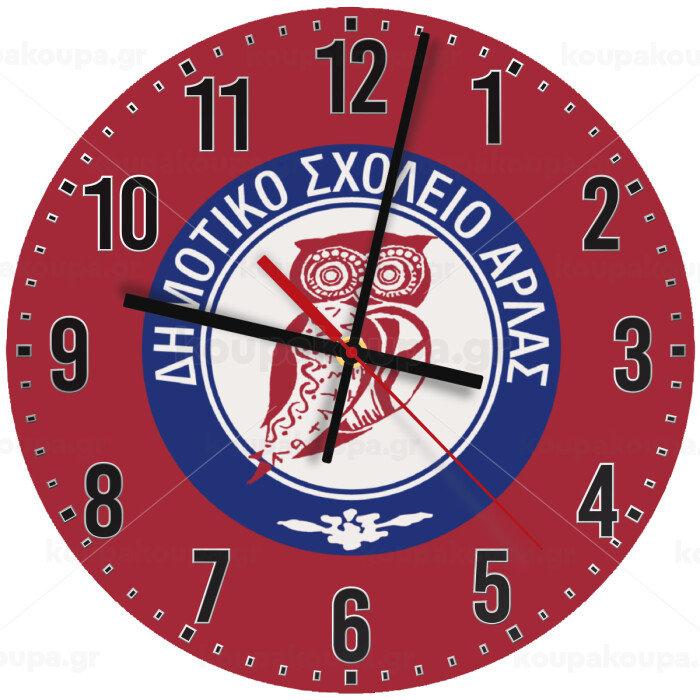 Έμβλημα Σχολικό κουκουβάγια μπορντό, Ρολόι τοίχου ξύλινο (30cm)
