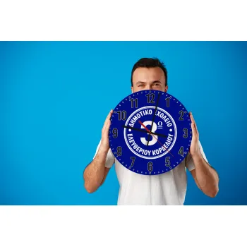 Έμβλημα Σχολικό μπλε, Ρολόι τοίχου ξύλινο (30cm)