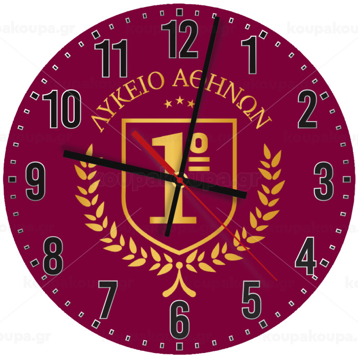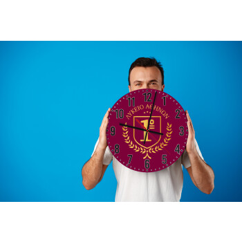 Έμβλημα Σχολικό μπορντό, Ρολόι τοίχου ξύλινο (30cm)