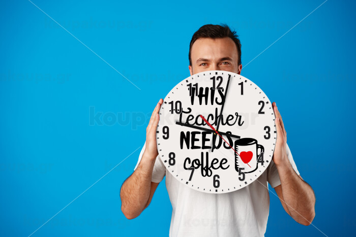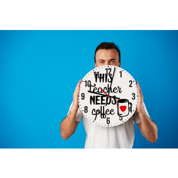 Τhis teacher needs coffee, Ρολόι τοίχου ξύλινο (30cm)