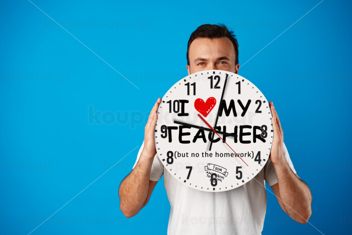 i love my teacher but no the homework, Ρολόι τοίχου ξύλινο (30cm)