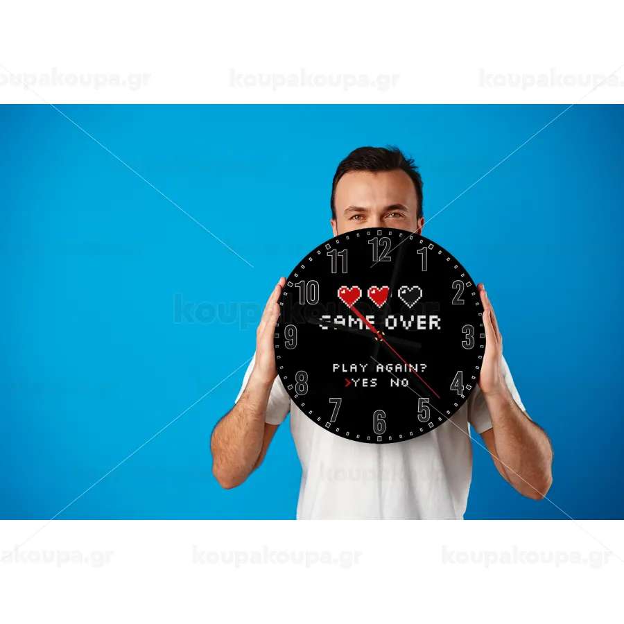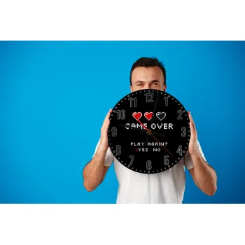 GAME OVER, Play again? YES - NO, Ρολόι τοίχου ξύλινο (30cm)