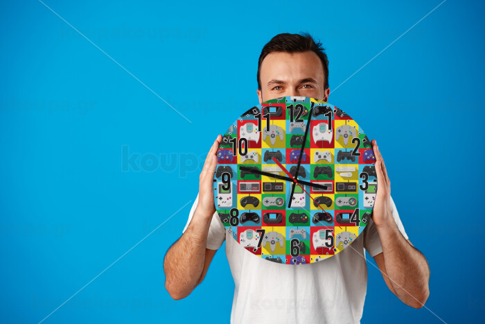 Gaming Controllers, Ρολόι τοίχου ξύλινο (30cm)