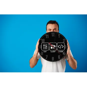 Eat Sleep Code, Ρολόι τοίχου ξύλινο (30cm)