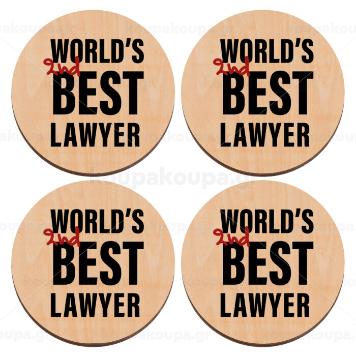2nd, World Best Lawyer , ΣΕΤ x4 Σουβέρ ξύλινα στρογγυλά plywood (9cm)