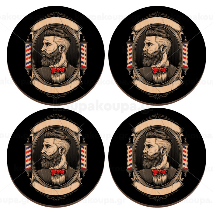 Barber shop, ΣΕΤ x4 Σουβέρ ξύλινα στρογγυλά plywood (9cm)