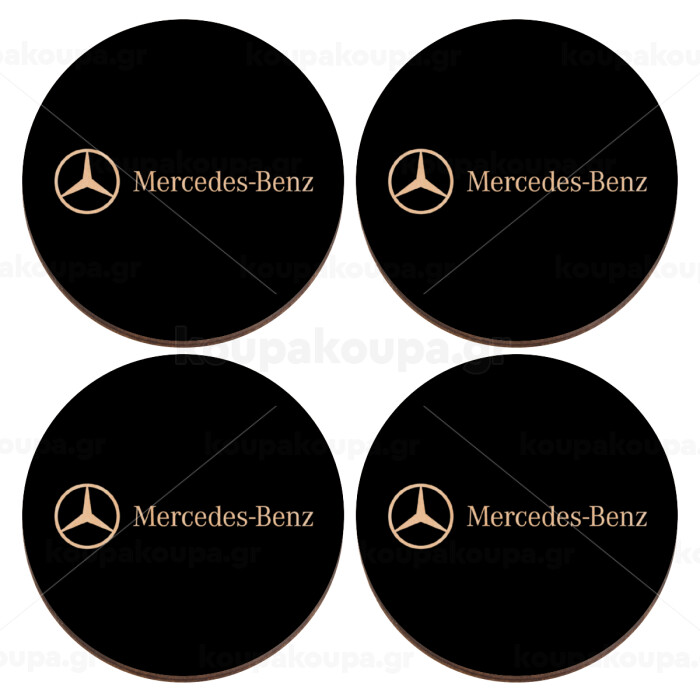 Mercedes small logo, ΣΕΤ x4 Σουβέρ ξύλινα στρογγυλά plywood (9cm)