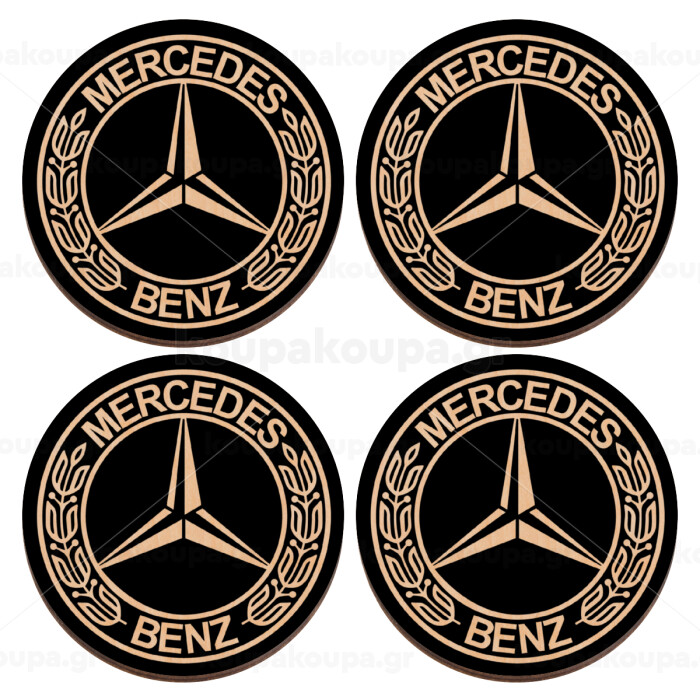 mercedes, ΣΕΤ x4 Σουβέρ ξύλινα στρογγυλά plywood (9cm)