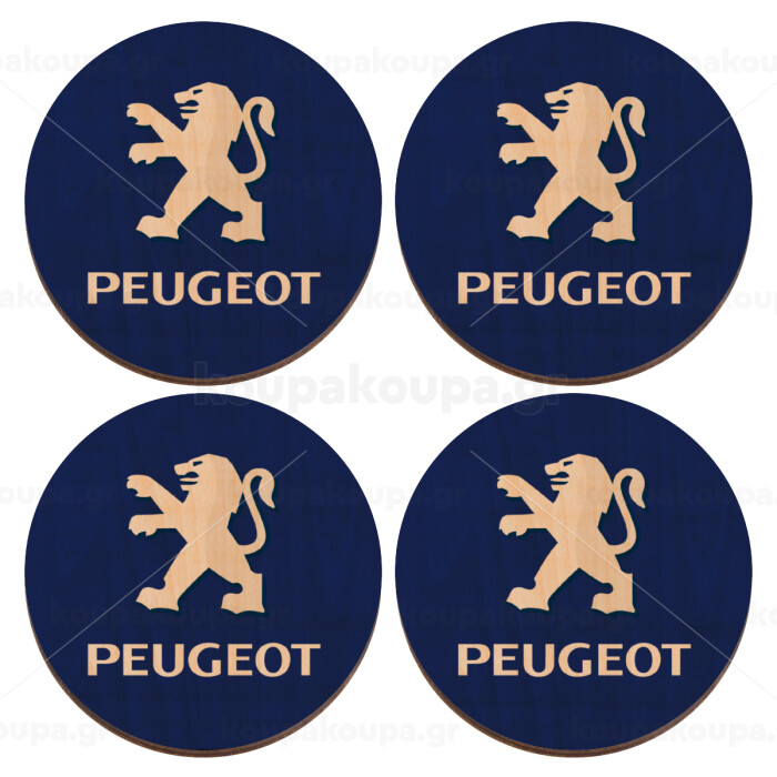 Peugeot, ΣΕΤ x4 Σουβέρ ξύλινα στρογγυλά plywood (9cm)