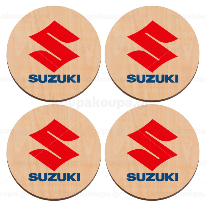 SUZUKI, ΣΕΤ x4 Σουβέρ ξύλινα στρογγυλά plywood (9cm)