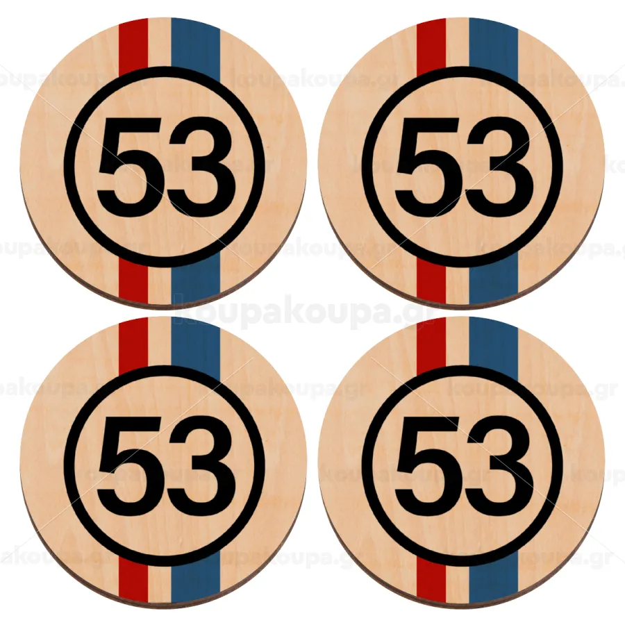 VW Herbie 53, ΣΕΤ x4 Σουβέρ ξύλινα στρογγυλά plywood (9cm)