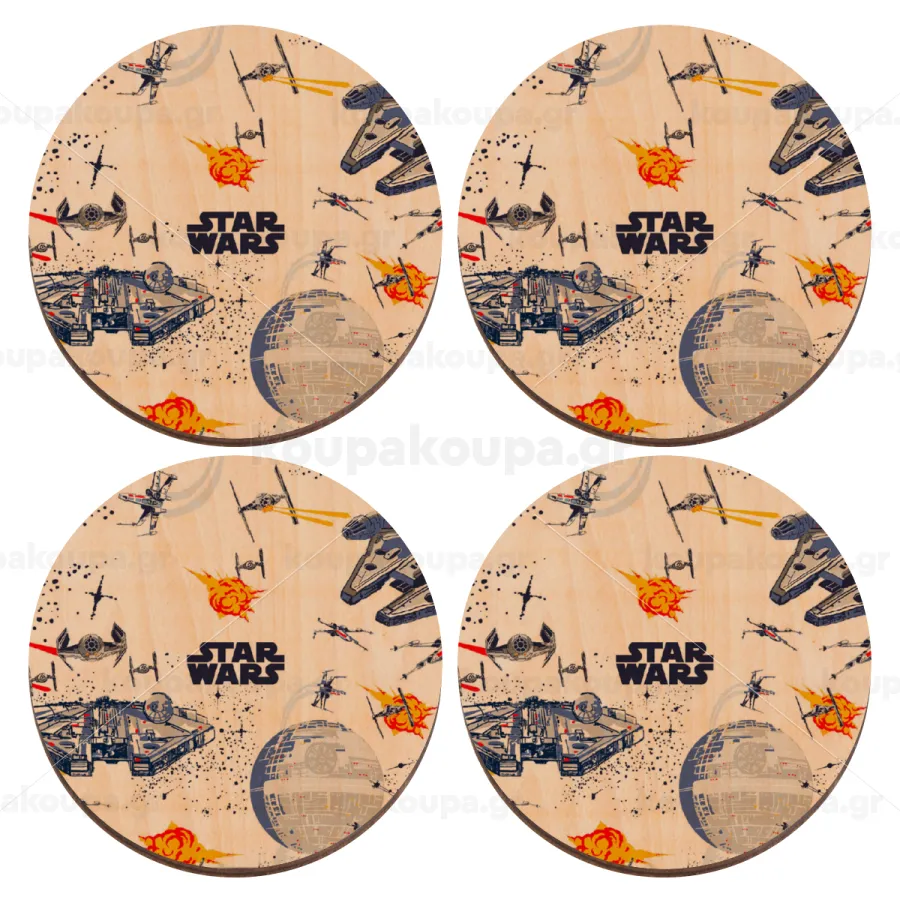Ο πόλεμος των άστρων, ΣΕΤ x4 Σουβέρ ξύλινα στρογγυλά plywood (9cm)