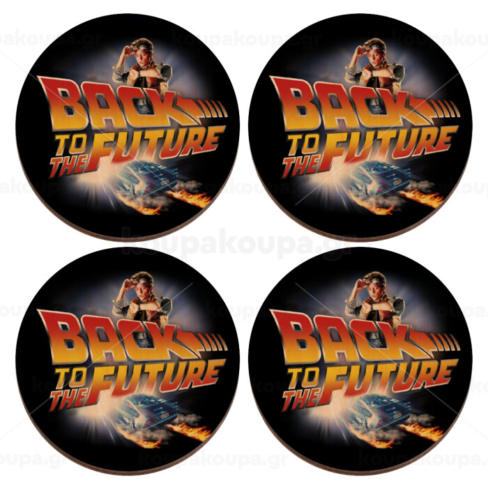 Back to the future, ΣΕΤ x4 Σουβέρ ξύλινα στρογγυλά plywood (9cm)