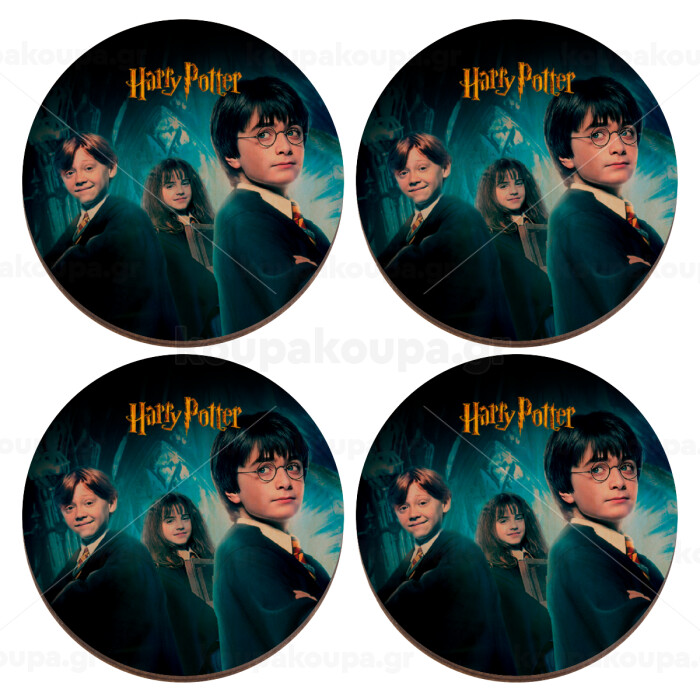 Harry potter and the philosopher's stone, ΣΕΤ x4 Σουβέρ ξύλινα στρογγυλά plywood (9cm)