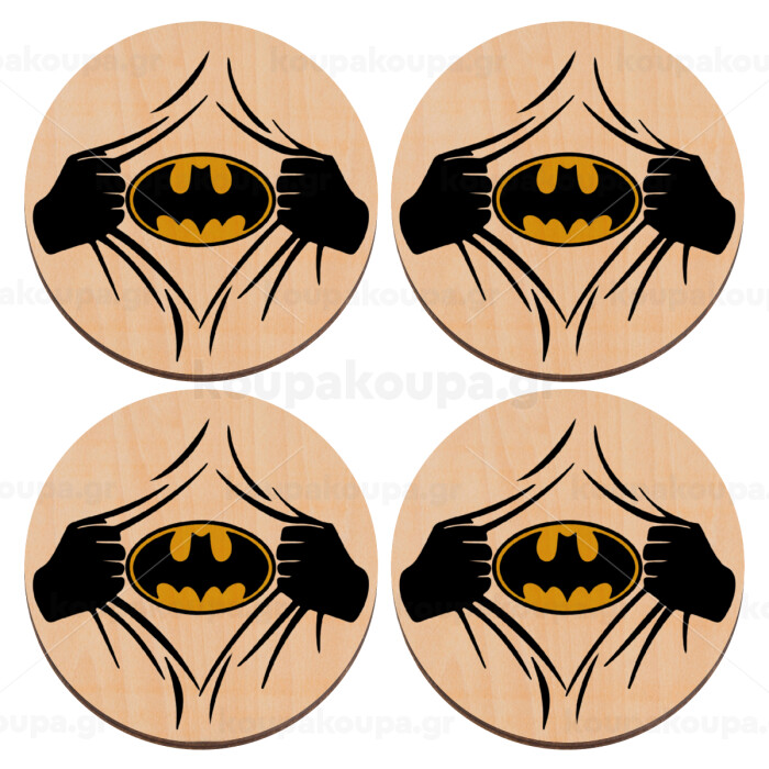 Hero batman, ΣΕΤ x4 Σουβέρ ξύλινα στρογγυλά plywood (9cm)