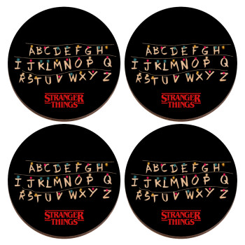 Stranger Things ABC, ΣΕΤ x4 Σουβέρ ξύλινα στρογγυλά plywood (9cm)