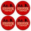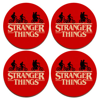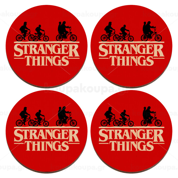 Stranger Things red, ΣΕΤ x4 Σουβέρ ξύλινα στρογγυλά plywood (9cm)