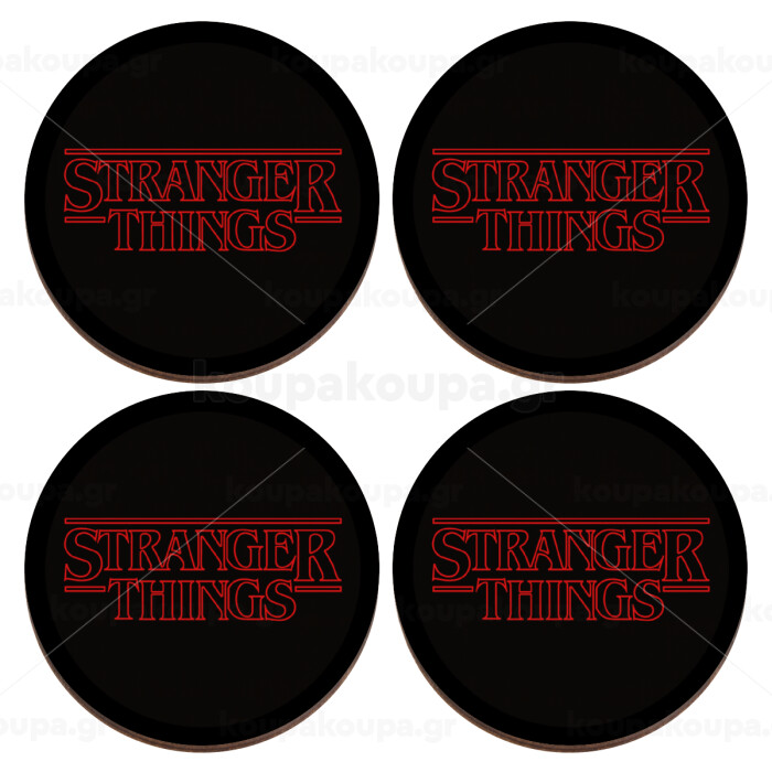 Stranger Things Logo, ΣΕΤ x4 Σουβέρ ξύλινα στρογγυλά plywood (9cm)