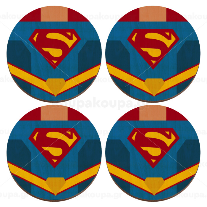 Superman flat, ΣΕΤ x4 Σουβέρ ξύλινα στρογγυλά plywood (9cm)