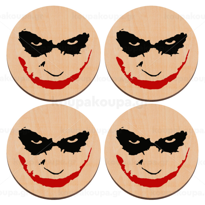 The joker smile, ΣΕΤ x4 Σουβέρ ξύλινα στρογγυλά plywood (9cm)