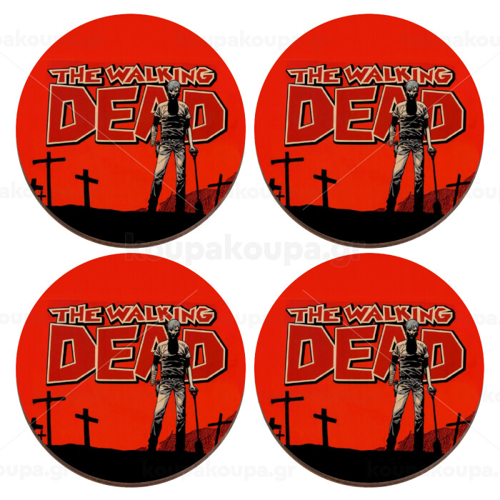 The Walking Dead, ΣΕΤ x4 Σουβέρ ξύλινα στρογγυλά plywood (9cm)