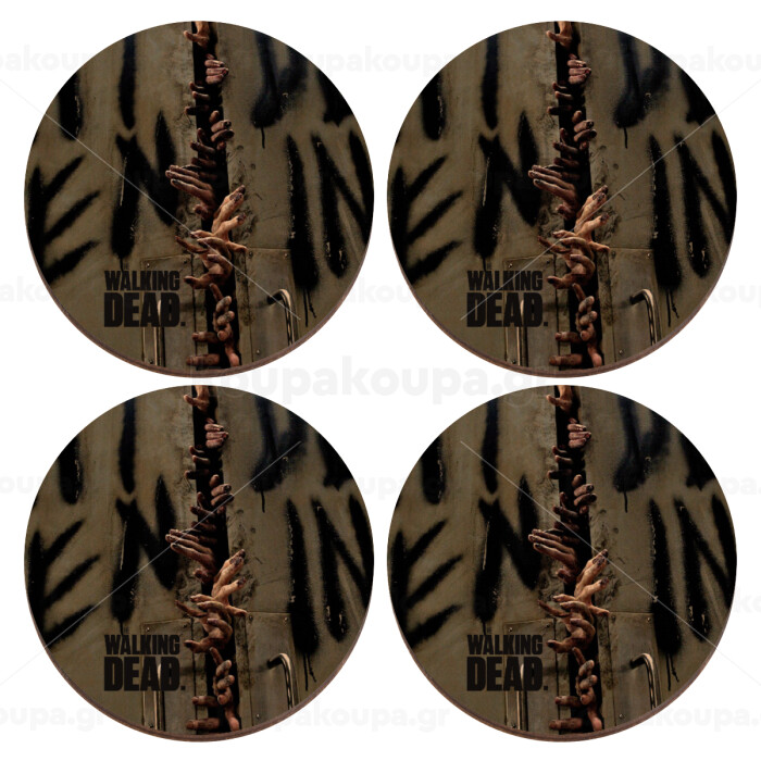 The walking dead hands, ΣΕΤ x4 Σουβέρ ξύλινα στρογγυλά plywood (9cm)