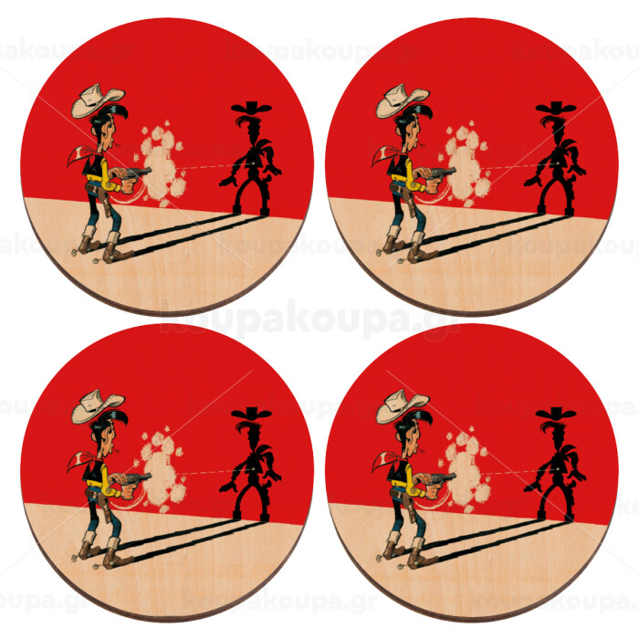 Λούκυ Λουκ σκιές, ΣΕΤ x4 Σουβέρ ξύλινα στρογγυλά plywood (9cm)